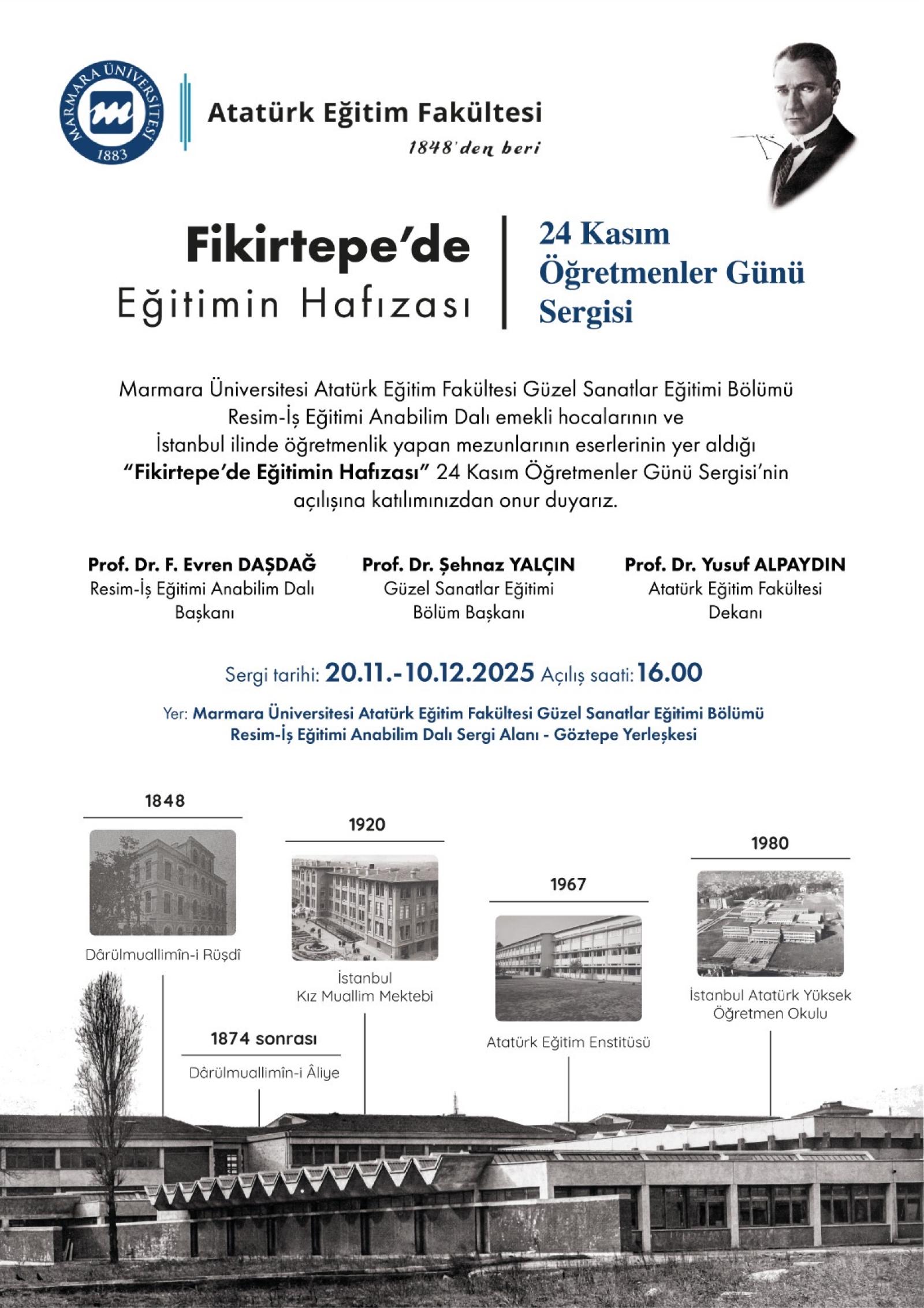 Marmara Üniversitesi Atatürk Eğitim FakültesiResim-İş Öğretmenliği Anabilim Dalı olarak, geçmişin birikimiyle bugünün üretimini buluşturan, sanat eğitiminin sürekliliğini görünür kılmayı amaçlayan bir sergidir. “Fikirtepe'de Eğitimin Hafizasi" bölüme ve bulunduğu yere adını veren Fikirtepe semtinden hareketle, bir eğitim mekânının sanatla kurduğu belleği, anlam katmanlarını ve kuşaklar boyunca aktarılan yaratıcı deneyimi görünür kılmayı hedeflemektedir. Marmara Üniversitesi Atatürk Eğitim Fakültesi Resim-İş Öğretmenliği Bölümü’nde görev yapmış emekli akademisyenler ile bölüm mezunu aktifsanat eğitimciler sergide yer almaktadır. Amaç; her biri kendi döneminin ruhunu taşıyan farklı kuşakların üretimlerini, aynı bellekte yeniden buluşturmak, sanat eğitiminin sürekliliğine kolektif bir tanıklık sunmaktır.